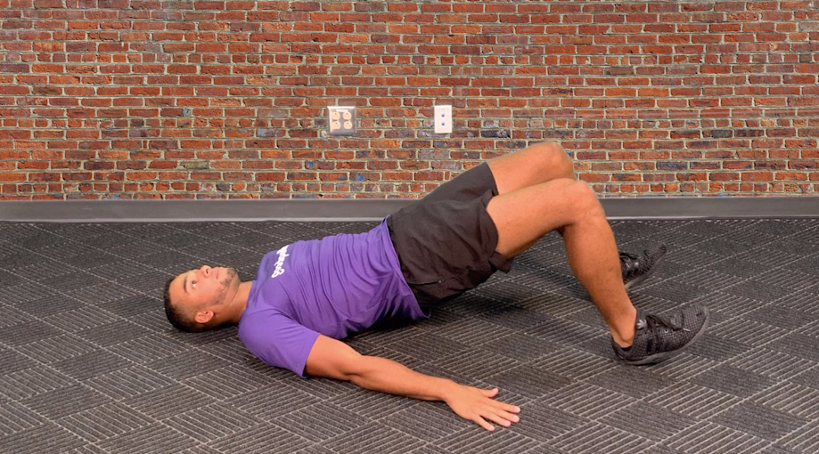 Lie on your back with both knees bent at 90 degrees, with both feet flat on the ground.