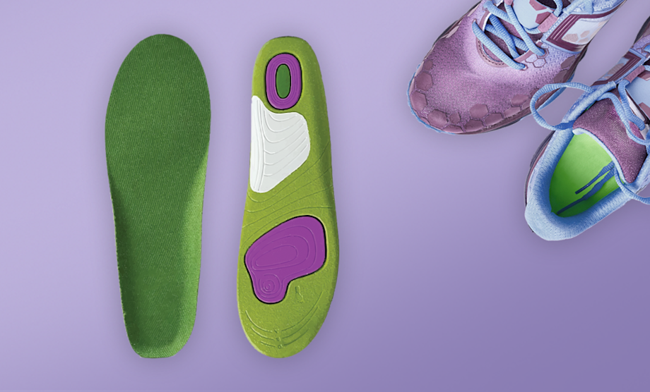 (name=insoles) Shoe insoles, also called shoe inserts, are put into shoes to provide cushioning and support. They are usually made of gel but can be sourced from other materials depending on their purpose.